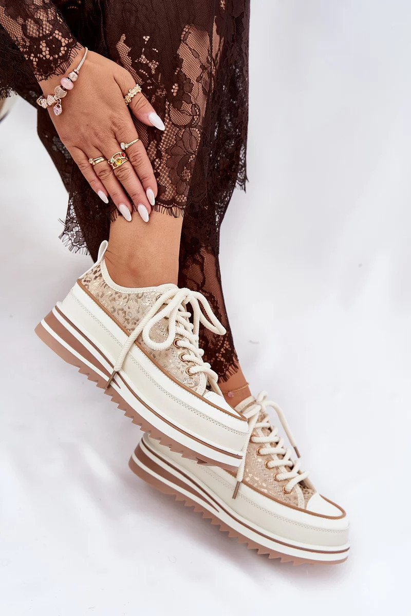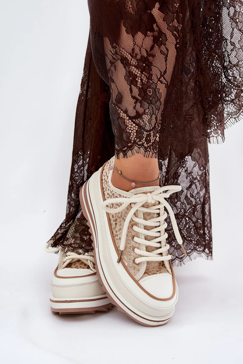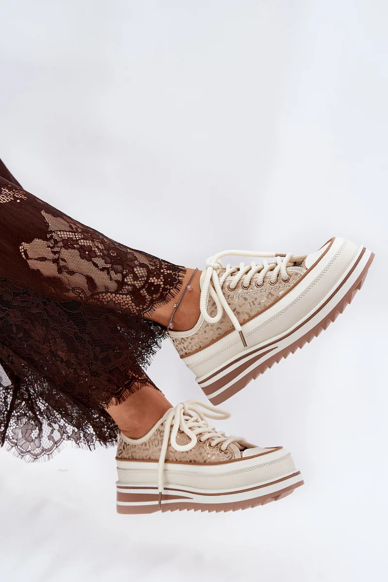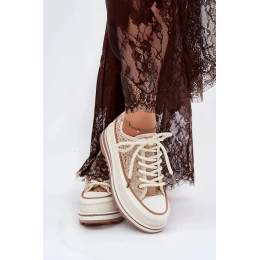 Dámské trampky S.Barski na masivní platformě v béžové barvě jsou moderním volnočasovým modelem, který spojuje pohodlí klasických trampek s výraznější, trendovou siluetou. Masivní platforma dodá botám stylový vzhled, opticky prodlouží nohy a zároveň nabídne stabilní došlap při chůzi ve městě nebo na cestách. Béžový odstín působí jemně a nadčasově, snadno se kombinuje s neutrálními barvami i džínovinou, takže trampky využijete k široké škále outfitů. Díky univerzálnímu provedení jsou vhodné na každodenní nošení, do města i na cestování.