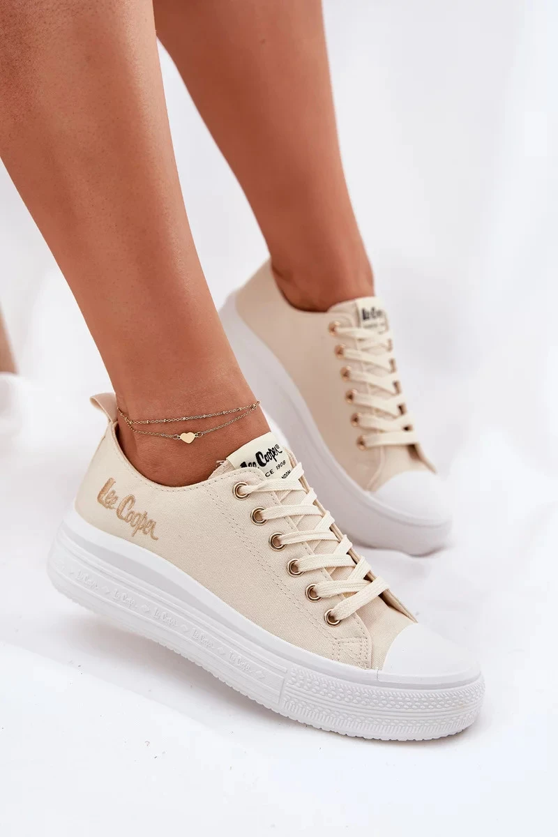 Dámské trampky na platformě Lee Cooper – béžové
