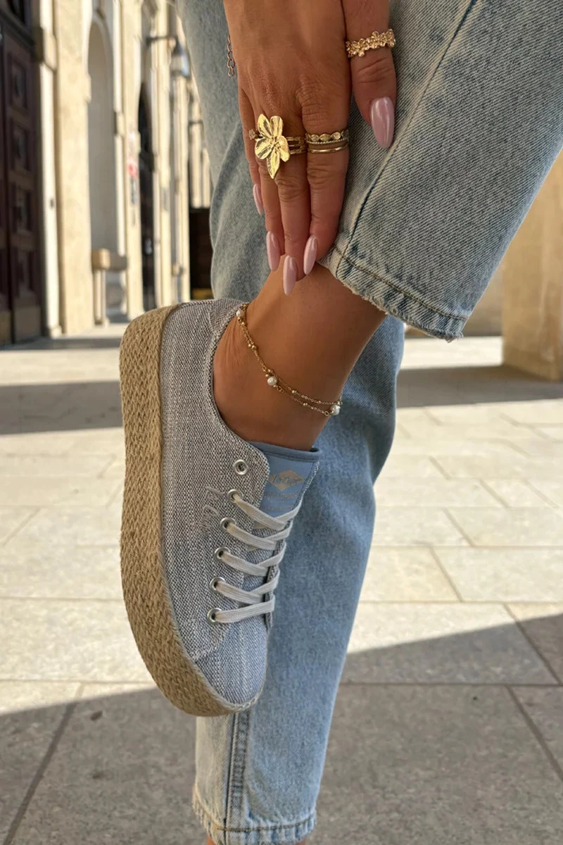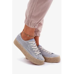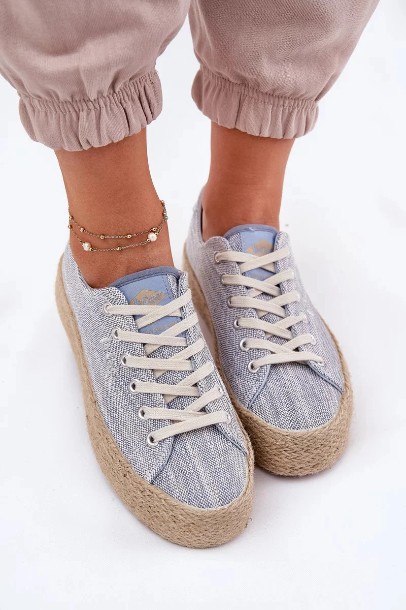Dámské trampky na platformě s pleteným detailem Lee Cooper – modré