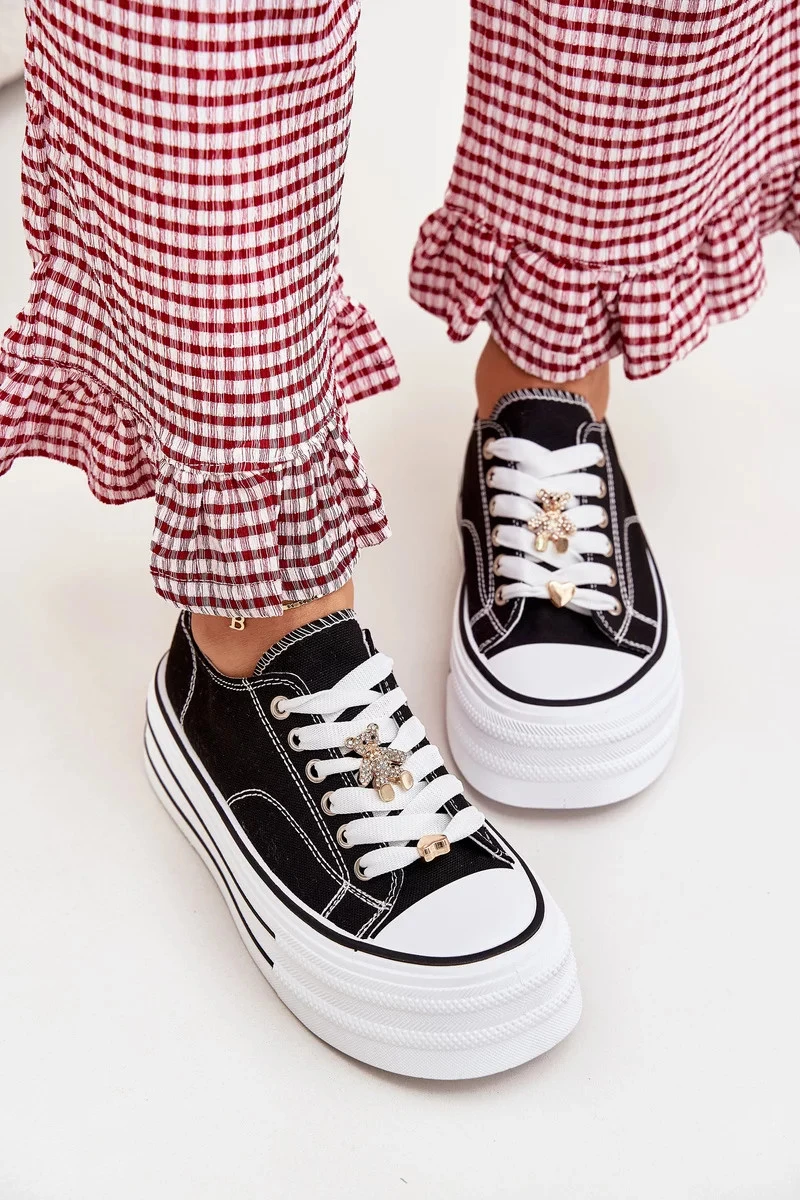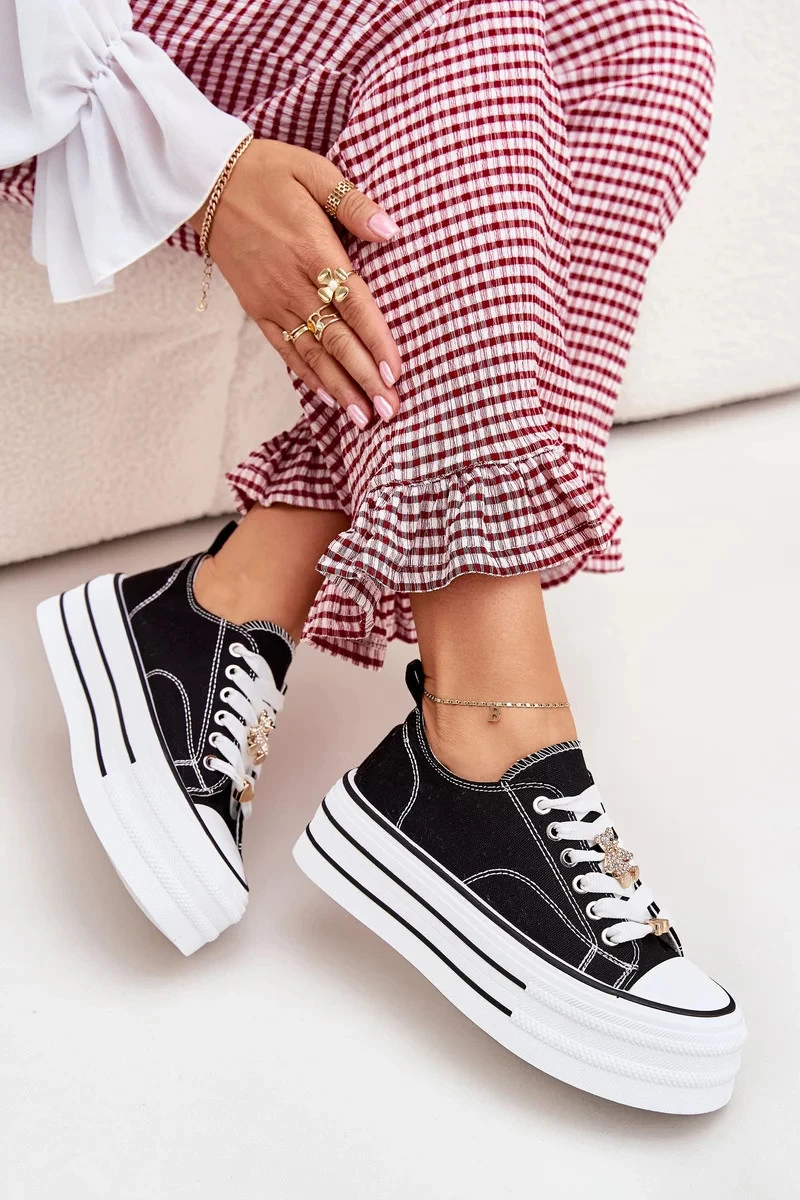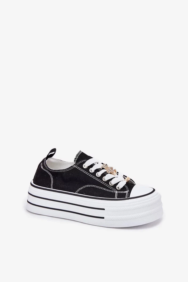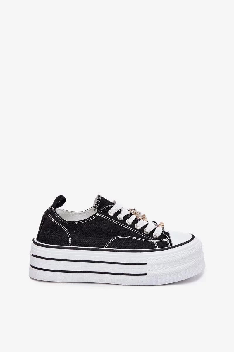 Dámské trampky na platformě se zlatými připínacími doplňky Fiorina – černé