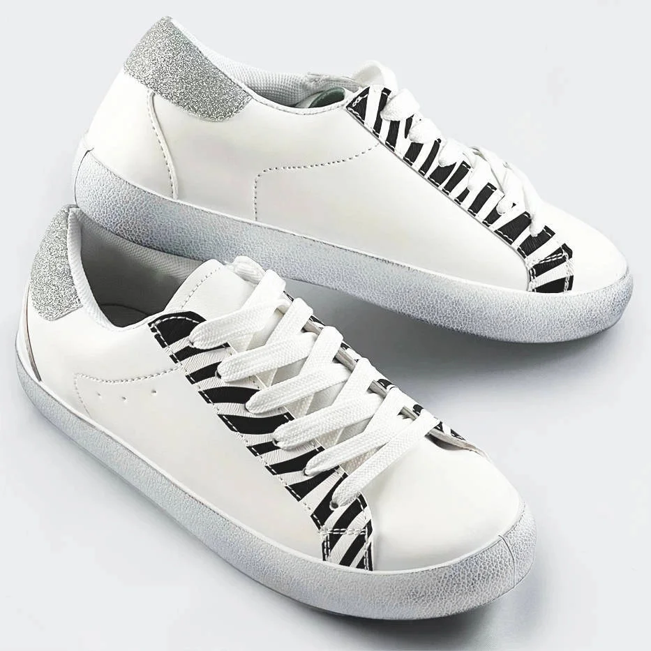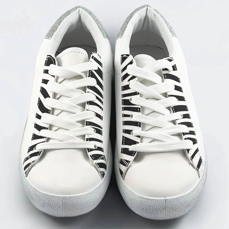 Bílo-černé dámské trampky se zvířecím motivem - zebra (6343)