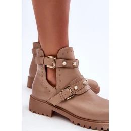 Dámské Trapery Botky s Perlami Bežová Klarisa