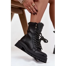 Dámské trapery kotníkové boty z eko kůže černé model 21744751 - Boto