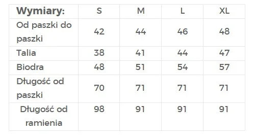 | Od podpaží k podpaží | 42 | 44 | 46 | 48 |