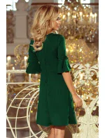 Dámské trapézové šaty v lahvově zelené barvě s rozšířenými rukávy model 6710835