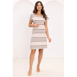 Pohodlná dámská noční košile moderního rovného střihu, navržená pro pohodlí a volnost pohybu. Výrazný vzor vodorovných pruhů jí dodává svěží, mladistvý charakter. Díky krátkým rukávům a délce před kolena je košile ideální pro jarně-letní sezónu. Měkký, na dotek příjemný materiál zajišťuje komfort nošení během spánku i doma.