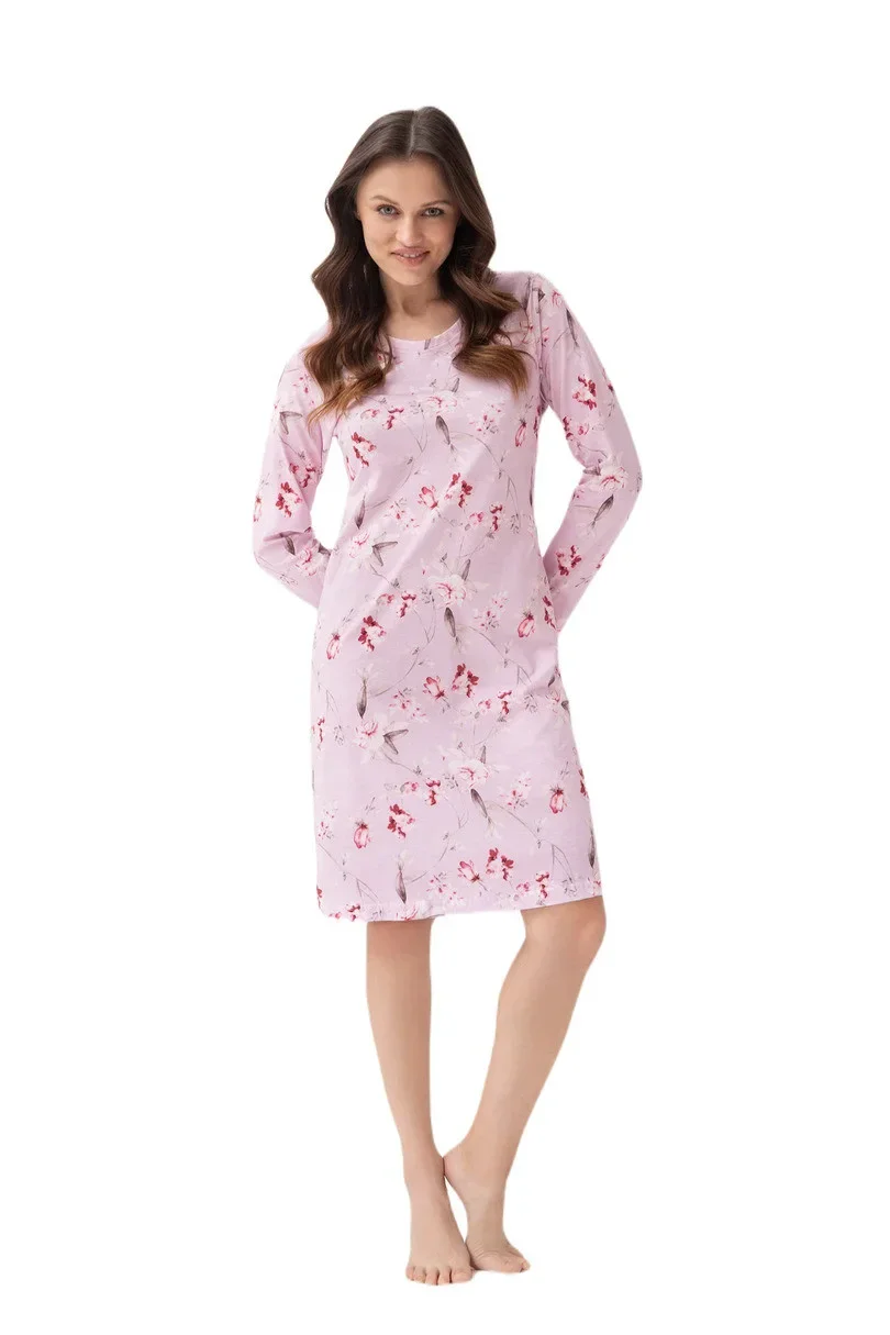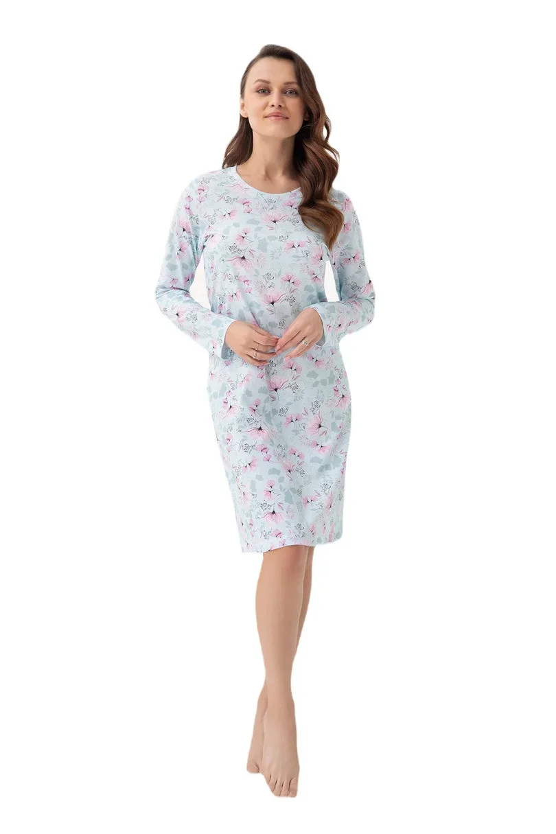 Dámské tričko s dlouhými rukávy, vyrobené ze vzorované bavlny. Kulatý výstřih, délka trička před kolena.
