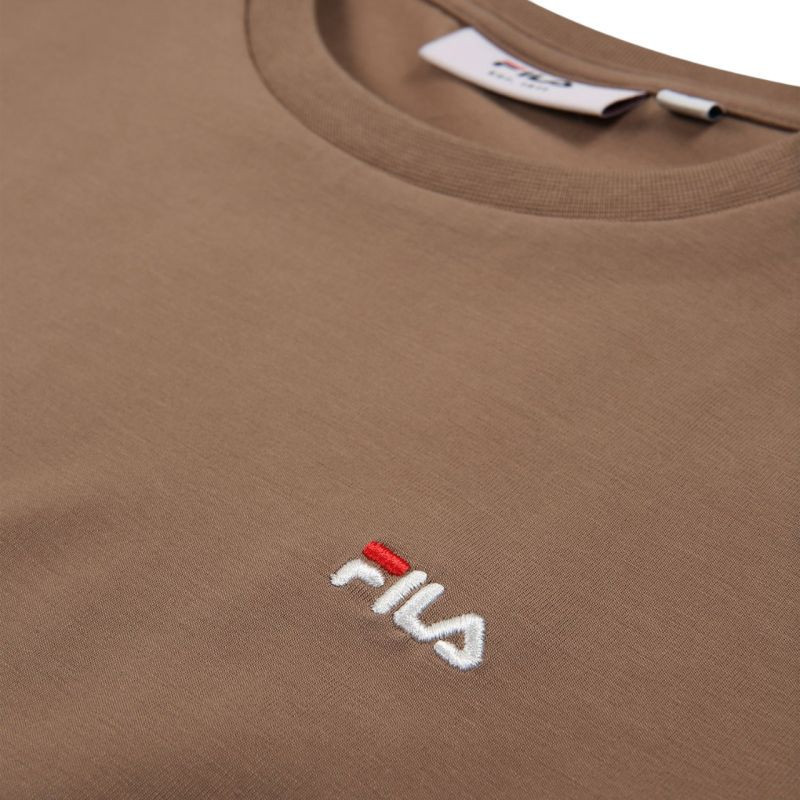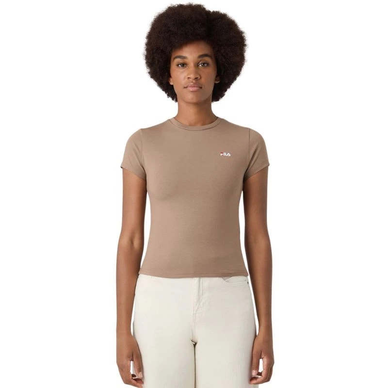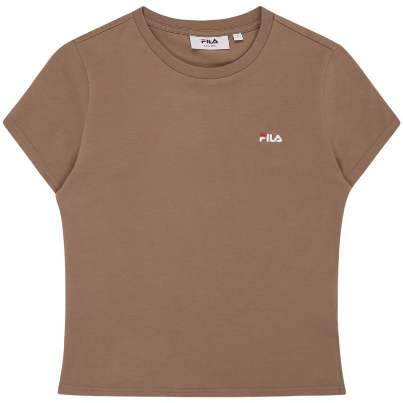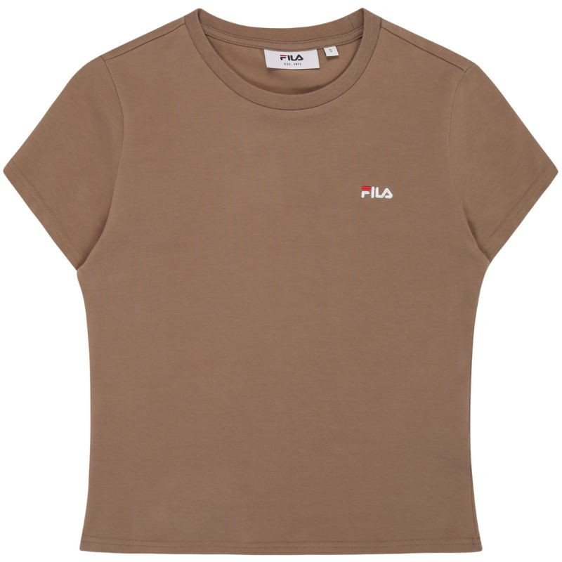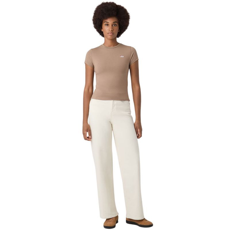 Koszulka damska Fila Trivero beżowa FAW1205 70008 T-shirt damski Fila sprawdzi się na co dzień. Niewielkie, wyszywane logo. Dopasowany, taliowany krój. Miękki materiał. Materiał: 93% bawełna, 7% elastan