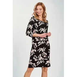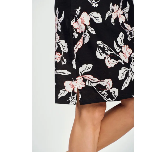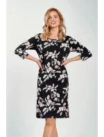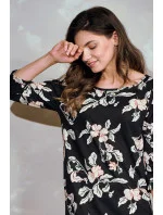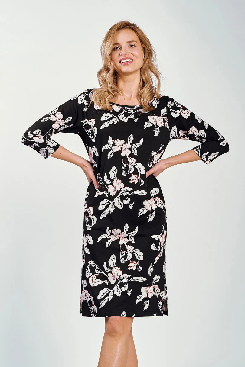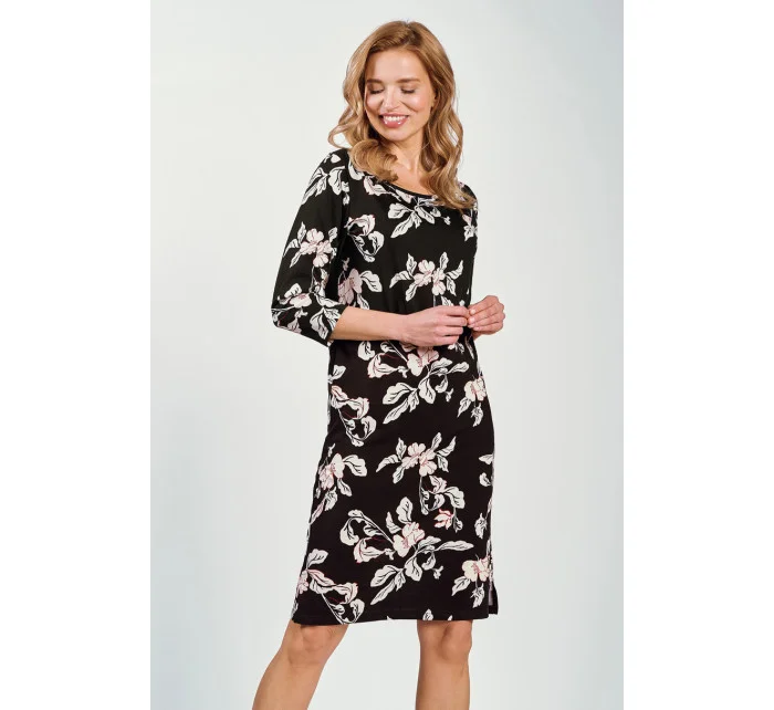 Dámská košile s 3/4 rukávy z bavlny s květinovým vzorem. Délka ke kolenům, jemné řasení, kulatý výstřih.