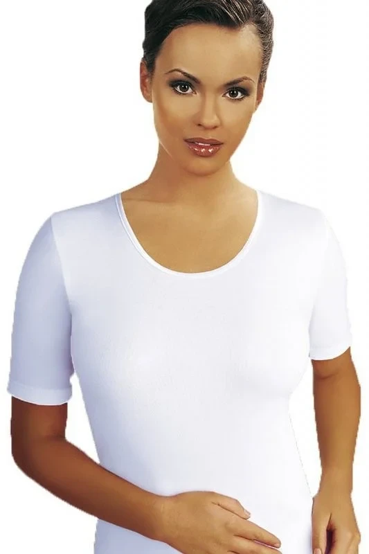 Dámské bavlněné tričko s krátkými rukávy. Má polokulatý výstřih s lemováním.
