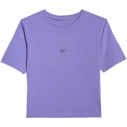Koszulka damska 4F F2971 fioletowa 4FWAW25TTSHF2971 51S Koszulka damska 4F sprawdzi się na co dzień. Skrócony fason typu cropped. Dane techniczne:· Materiał główny: 95% bawełna, 5% elastan· Krój slim - podkreśla sylwetkę, zapewniając dopasowany wygląd· Gramatura 180 gsm - zapewnia lekkość i komfort noszenia na co dzień· Krój slim - podkreśla sylwetkę, zapewniając dopasowany wygląd· Dominująca bawełna w składzie materiałowym- gwarantuje miękkość, trwałość i przyjemny kontakt ze skórą· Jednolita kolorystyka - ułatwia komponowanie różnorodnych stylizacji· Dzianina single jersey - miękka w dotyku, o gładkiej, przyjemnej powierzchni· Okrągły dekolt z lekkim ribowaniem - zwiększa komfort i trwałość wykończenia· Drobne odblaskowe logo 4F z przodu – subtelny detal zwiększający widoczność