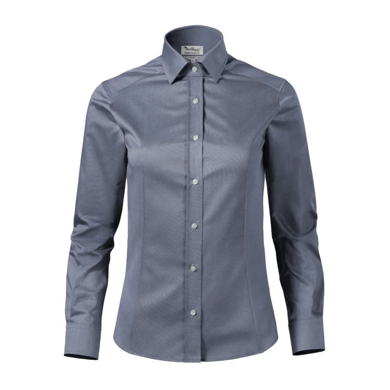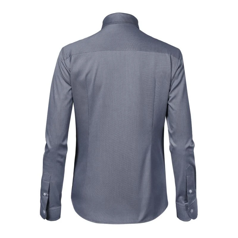 Micro Twill, 100 % bavlna, snadná údržba, navrženo předním českým krejčím Romanem Humlíčkem, extra dlouhé vlákno, přiléhavý střih s bočními švy, dvojitý zadní sed a záševky na zádech, záševky v pase vpředu, košilový límec, nařasené přední díly, dlouhé rukávy s půlkruhovou manžetou na 2 knoflíky, perleťové knoflíky v barvě 00 (2 náhradní knoflíky), zaoblený spodní okraj
