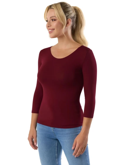 Dámské tričko Manati wine BABELL - bordó barva - z měkké viskózy s přídavkem elastanu - kulatý výstřih - tříčtvrteční rukávy - příjemný materiál - jednoduchý design