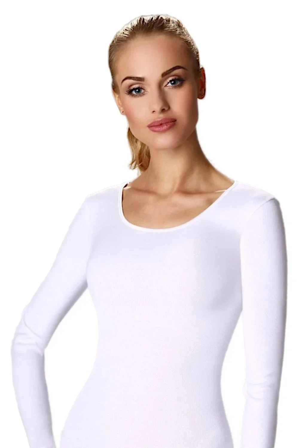 Dámské tričko Irene white ELDAR - bílá barva - z vysoce jakostní bavlny - kulatý výstřih - dlouhé rukávy