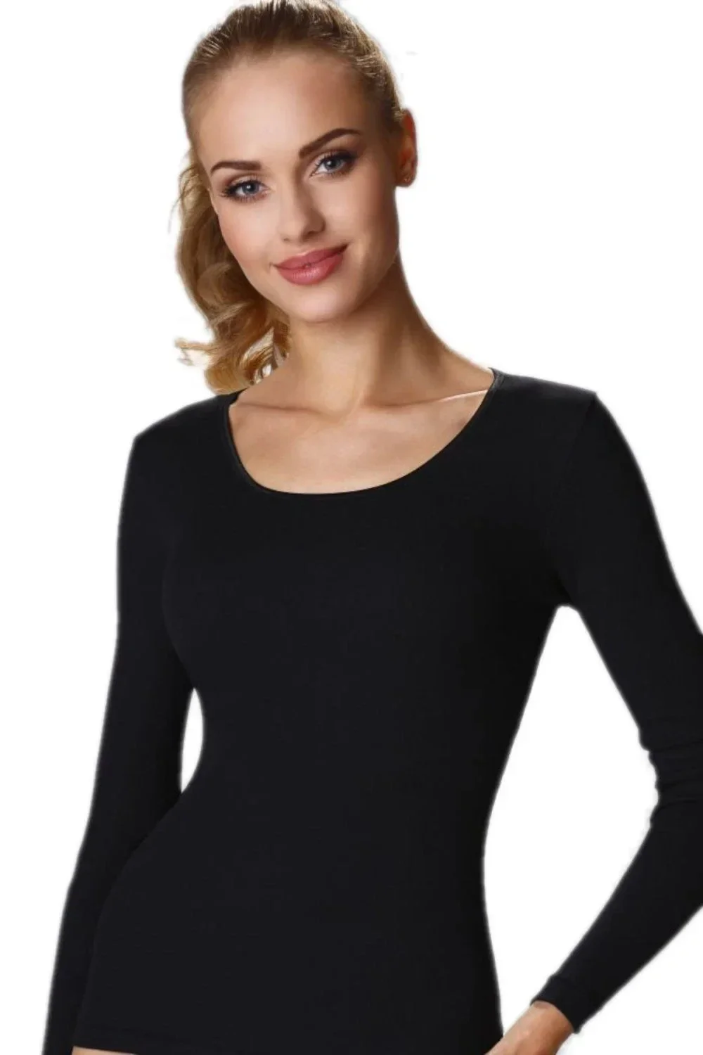 Dámské tričko Irene black ELDAR - černá barva - z vysoce jakostní bavlny - kulatý výstřih - dlouhé rukávy