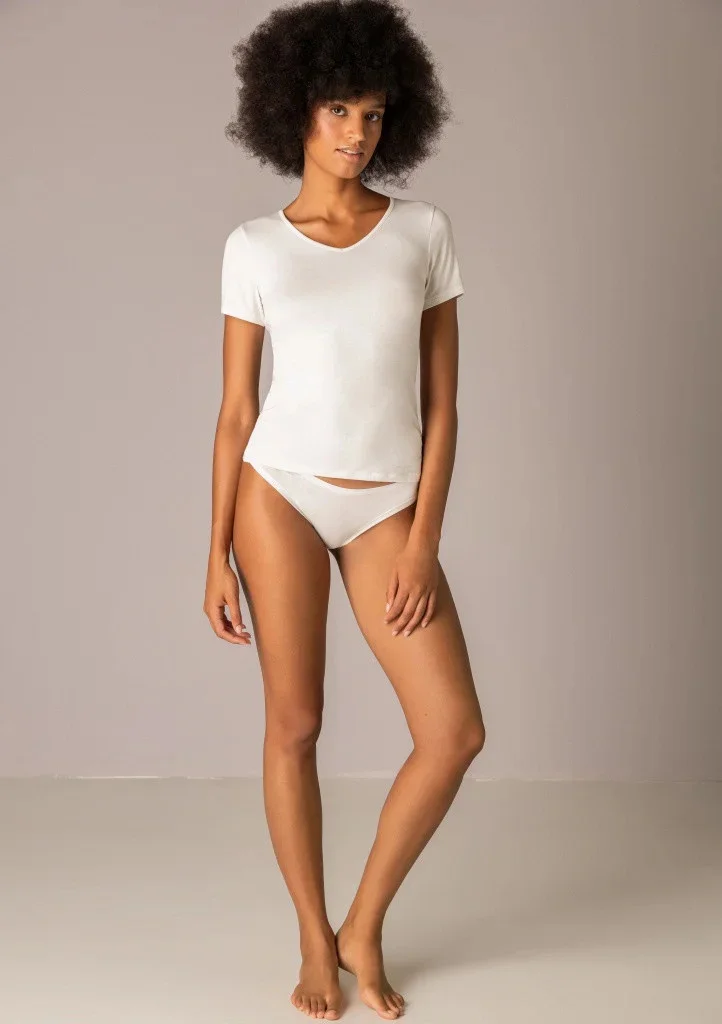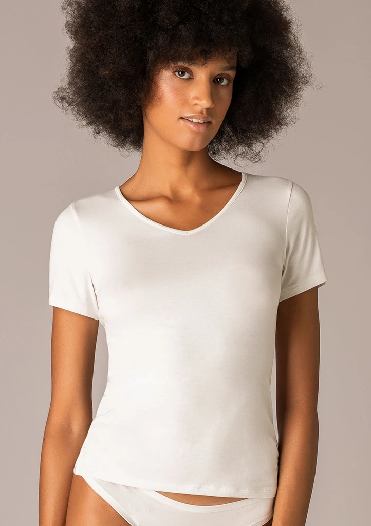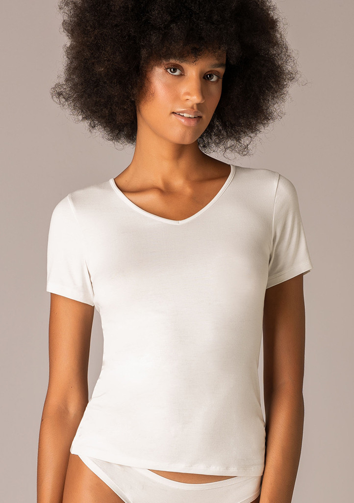 Kvalitní dámské tričko od značky Sielei. Dámské tričko s krátkým rukávem a výstřihem "V".Tričko je vyrobeno z modalu. Díky tomu je velmi měkké a příjemné na nošení. Materiál je pružný a prodyšný. Tričko má jemné, pružné švy.