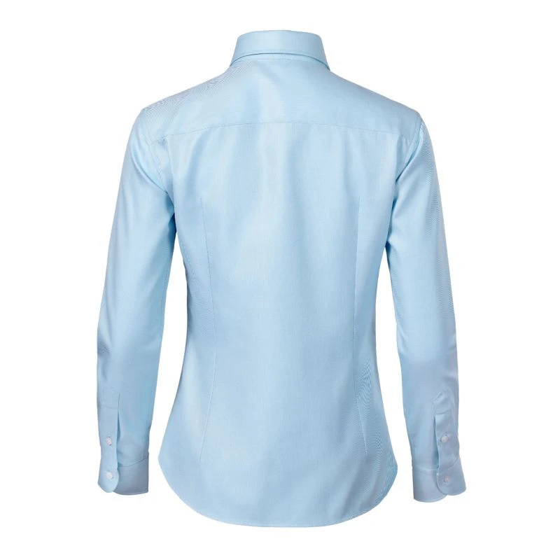 Micro Twill, 100 % bavlna, snadná údržba, navrženo předním českým krejčím Romanem Humlíčkem, extra dlouhé vlákno, přiléhavý střih s bočními švy, dvojitý zadní sed a záševky na zádech, záševky v pase vpředu, košilový límec, nařasené přední díly, dlouhé rukávy s půlkruhovou manžetou na 2 knoflíky, perleťové knoflíky v barvě 00 (2 náhradní knoflíky), zaoblený spodní okraj