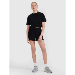 Damska koszulka t-shirt 4Fto idealny wybór na co dzień — świetnie sprawdzi się zarówno w sportowych, jak i casualowych stylizacjach. Model o regularnym kroju i modnym, skróconym fasonie typu cropped kończy się tuż przy talii, podkreślając sylwetkę.
