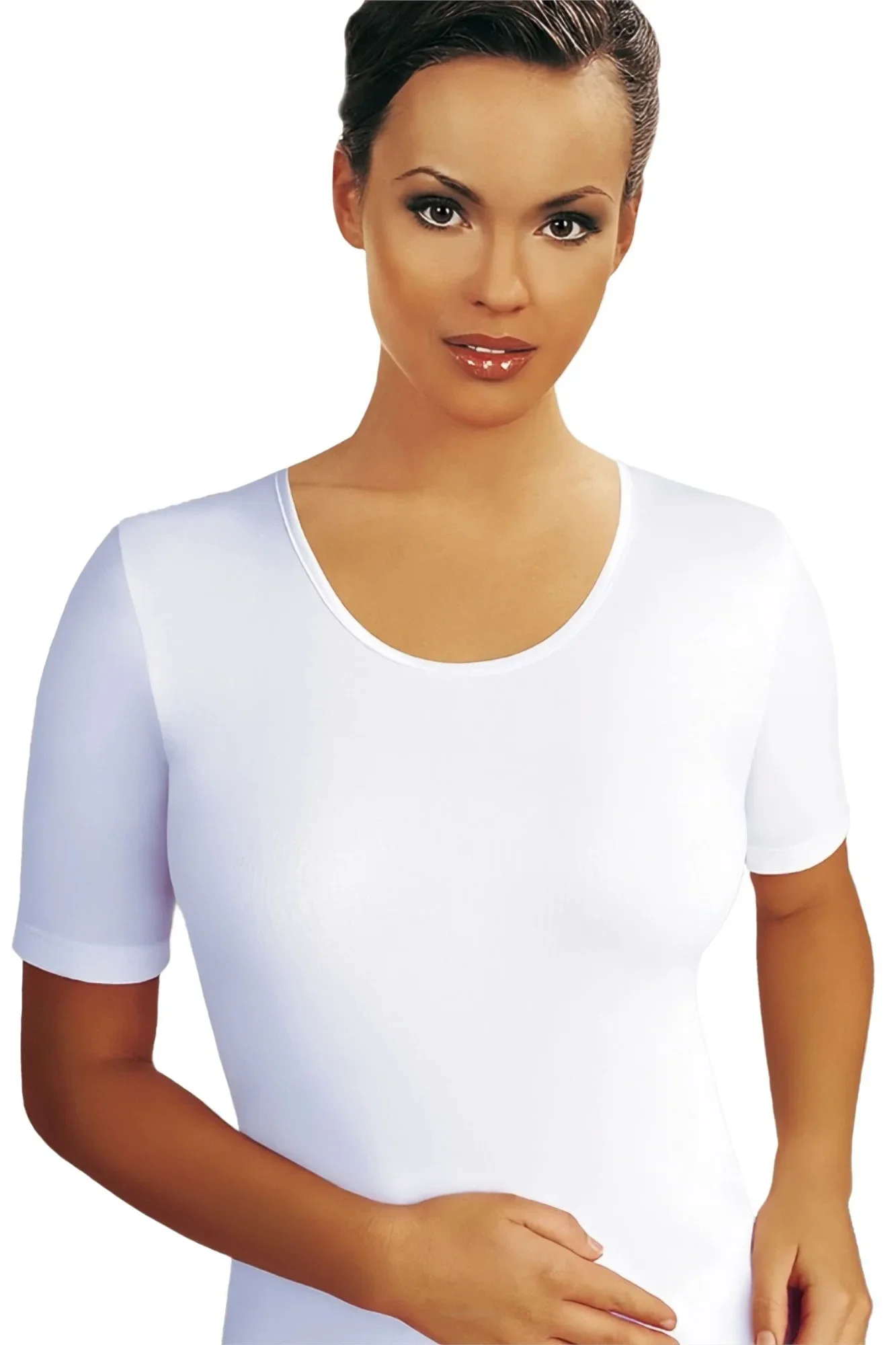 Dámská košilka Nina white EMILI - bílá barva - z vysoce jakostní bavlny - s krátkými rukávy - kulatý výstřih - krásně se přizpůsobí postavě a je velice pohodlné