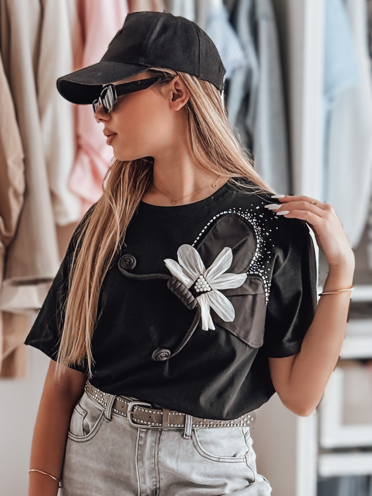 Dámské tričko oversize s 3D efektem černé Dstreet model 21983074 - FashionStreet