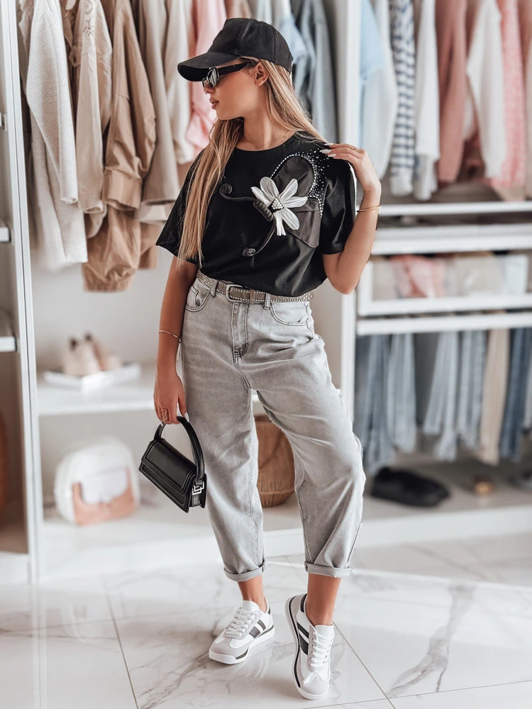 T-shirt damski oversize z trójwymiarowym efektem motyla i zdobieniami w postaci perełek. Luźny fason zapewnia wygodę, a unikalny design dodaje charakteru każdej stylizacji. Doskonały wybór dla osób ceniących oryginalne detale i modowe akcenty. Sprawdzi się zarówno w codziennych, jak i bardziej casualowych zestawach.