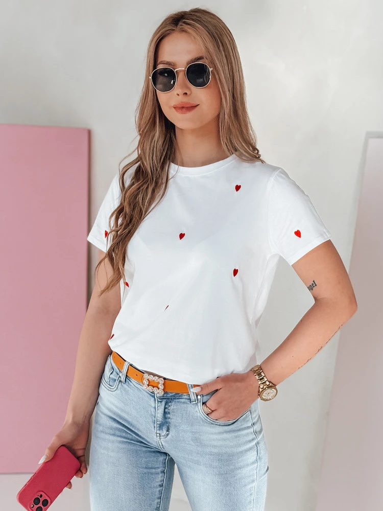 Dámské tričko oversize se srdíčky ROMAFINA bílá Dstreet RY2889