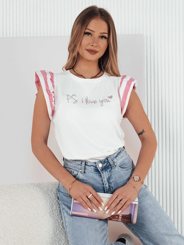 Objevte kouzlo trička AMOURI, které v sobě spojuje jemnost a modernost. Rozhalené rukávy s výraznými proužky dodávají tomuto modelu lehkost a dívčí šarm. Jemný nápis na přední straně dělá z trička vyjádření vašich pocitů. Ideální pro každodenní i romantické stylizace.
