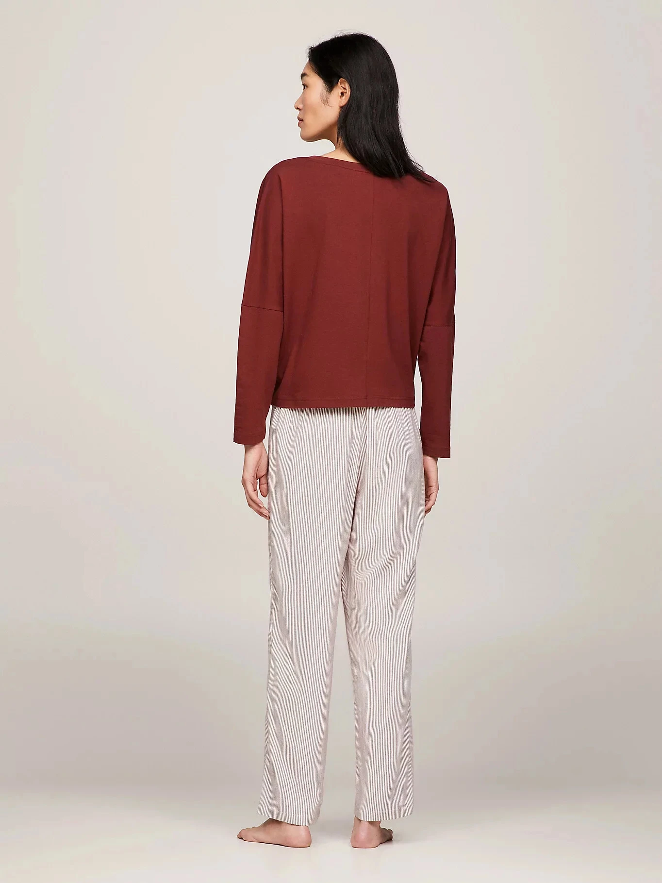 Dámské tričko s dlouhým rukávem UW0UW04153 DW5 kaštanové - Tommy Hilfiger