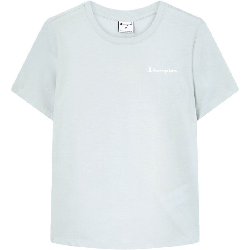 Dámské tričko Champion s krátkým rukávem v modré barvě 118408 BS224 Tričko Champion je tričko pro každodenní nošení, má střih na míru, kulatý výstřih, měkký materiál a 100% bavlnu.