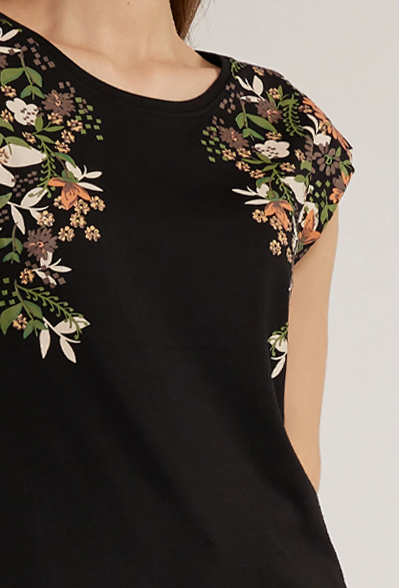 Přidání recenze k Dámské tričko s květinovým potiskem model 18523075 černé - Monnari