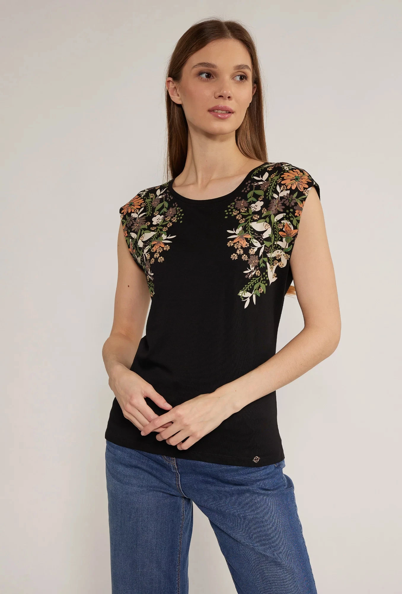 Dámské tričko s květinovým potiskem model 18523075 černé - Monnari