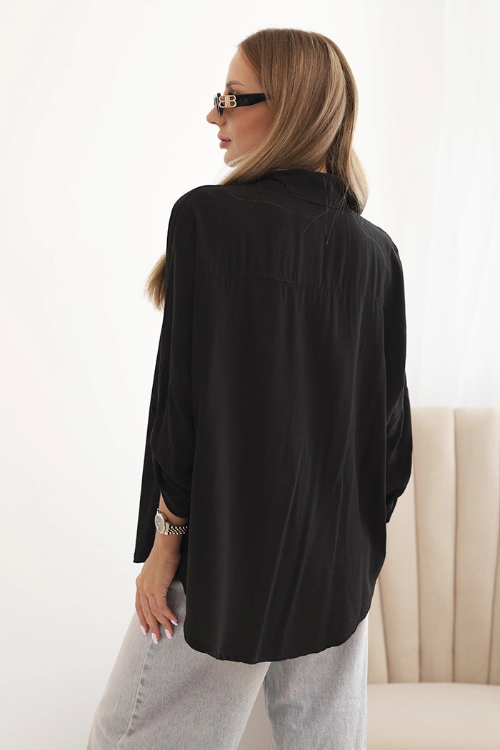 Dámské tričko s model 21954834 ozdobnými knoflíky a límečkem černá - K-Fashion