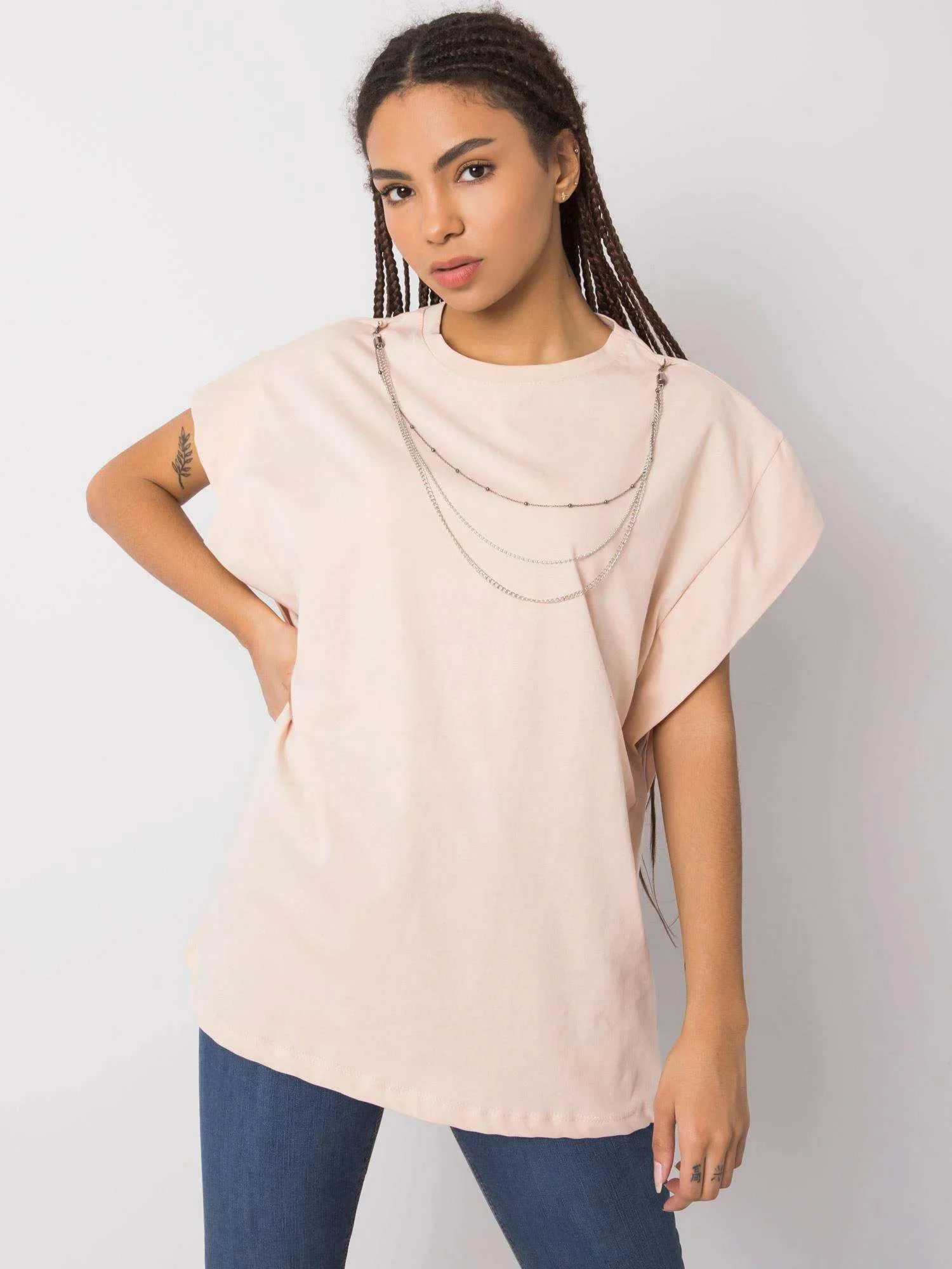 Tričko RUE PARIS Peach s náhrdelníkem .