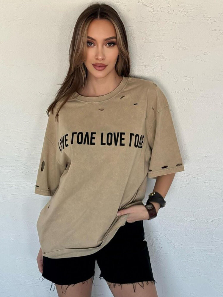 Nechte svůj každý den naplnit láskou s tričkem BONGANIR. Toto tričko s kulatým výstřihem a jedinečnými průstřihy je víc než jen oděv - je to způsob, jak vyjádřit sebe a své pocity. Nápis "LOVE" na přední straně je nejen módním prvkem, ale také připomínkou toho, co je v životě nejdůležitější. Vyberte si tričko, které říká totéž co vy.