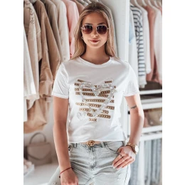 T-shirt damski z krótkim rękawem, ozdobiony efektownym nadrukiem w kształcie serca. Wzór został wzbogacony o błyszczące cyrkonie i perły, które nadają całości wyjątkowego charakteru oraz efektu 3D. Dekoracyjne przeszycia i delikatny połysk sprawiają, że ten model doskonale łączy elegancję ze swobodnym stylem. Idealna baza do codziennych i bardziej wyrazistych stylizacji.