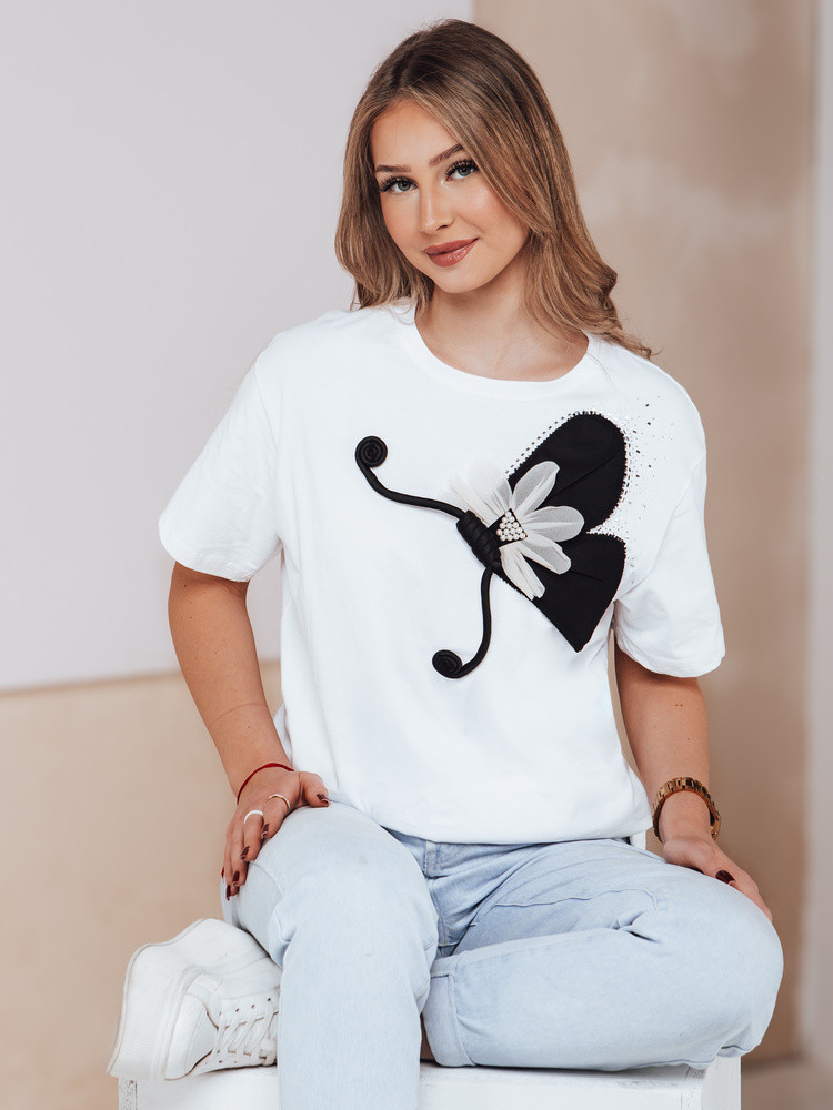 Dámské tričko se zdobením PEARLI bílé FashionStreet RY2718