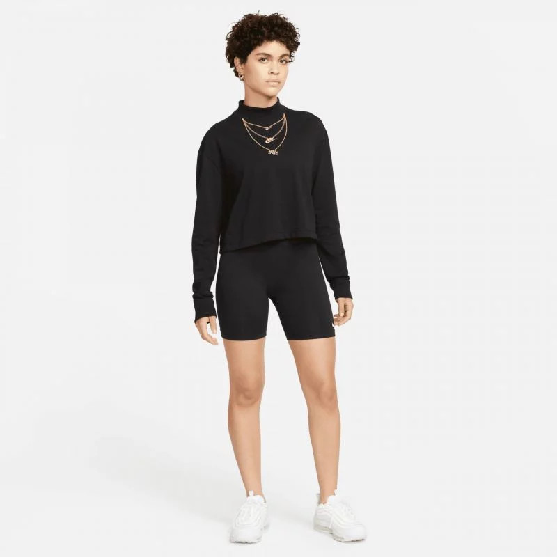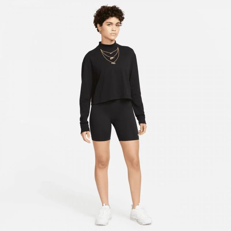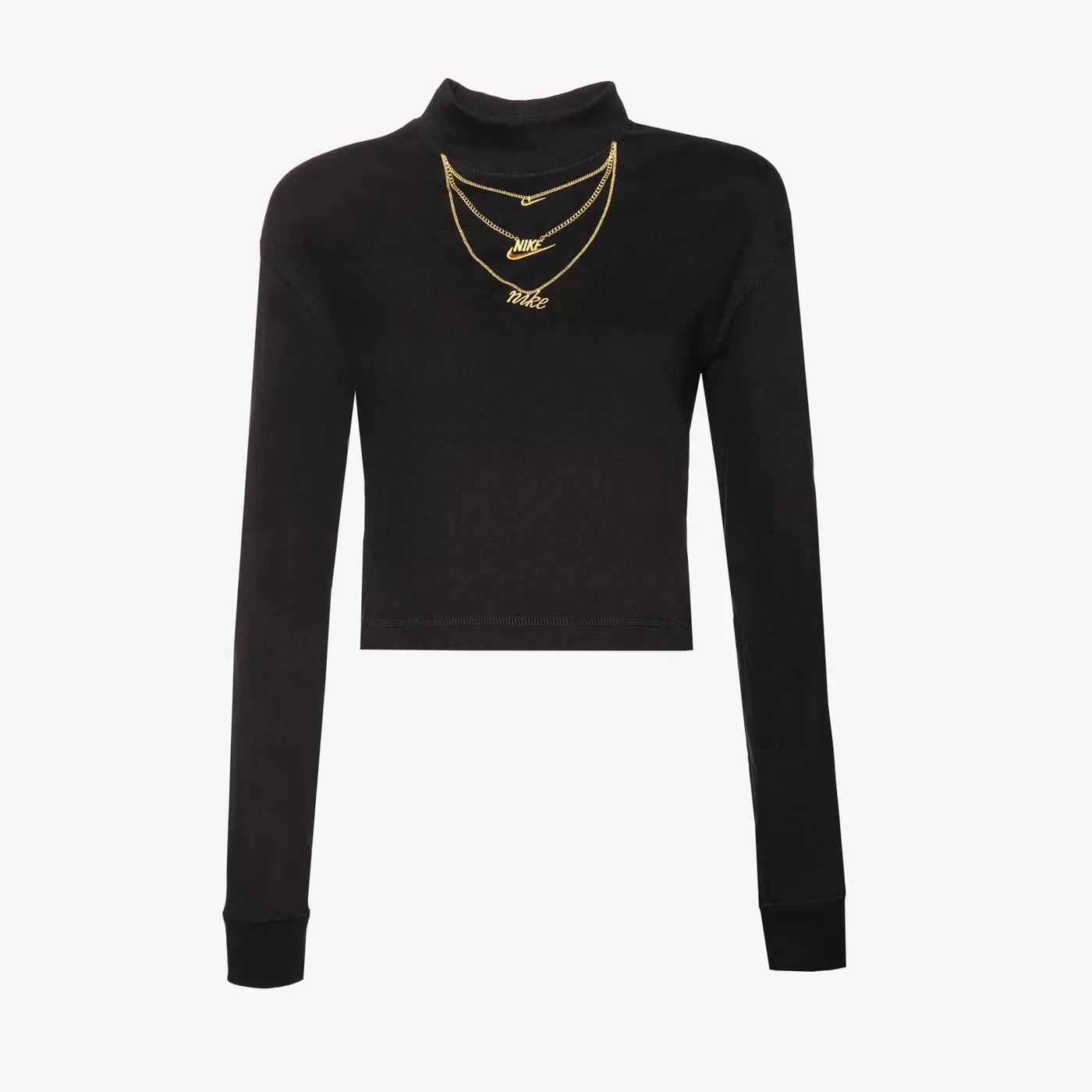 - Tričko Nike Sportswear Mock Neck je volné, měkké a příjemné tričko. Středně silná bavlna z něj dělá klíčovou součást oděvu. Zlatá výšivka pod žebrováním vytváří příjemný efekt vrstveného zlatého šití.