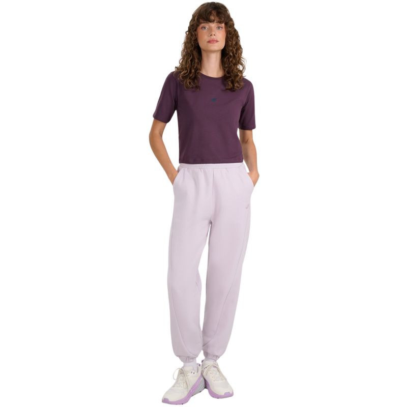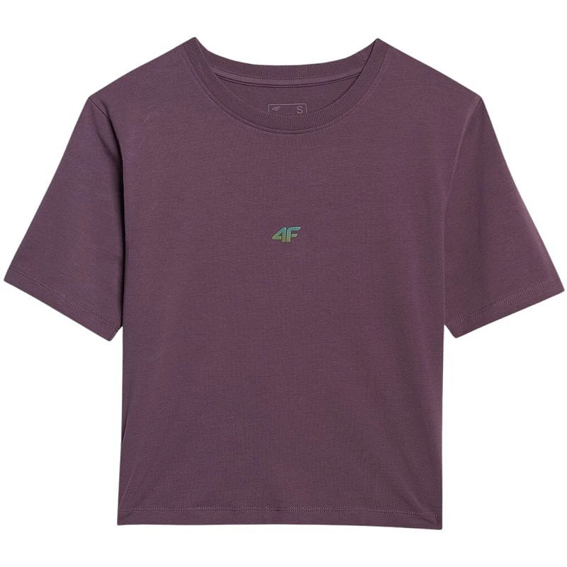 Koszulka damska 4F F2971 ciemny fiolet 4FWAW25TTSHF2971 50S Koszulka damska 4F sprawdzi się na co dzień. Skrócony fason typu cropped. Dane techniczne:· Materiał główny: 95% bawełna, 5% elastan· Krój slim - podkreśla sylwetkę, zapewniając dopasowany wygląd· Gramatura 180 gsm - zapewnia lekkość i komfort noszenia na co dzień· Krój slim - podkreśla sylwetkę, zapewniając dopasowany wygląd· Dominująca bawełna w składzie materiałowym- gwarantuje miękkość, trwałość i przyjemny kontakt ze skórą· Jednolita kolorystyka - ułatwia komponowanie różnorodnych stylizacji· Dzianina single jersey - miękka w dotyku, o gładkiej, przyjemnej powierzchni· Okrągły dekolt z lekkim ribowaniem - zwiększa komfort i trwałość wykończenia· Drobne odblaskowe logo 4F z przodu – subtelny detal zwiększający widoczność
