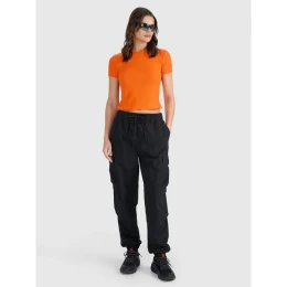 T-shirt damski z krótkim rękawem idealnie sprawdzi się jako element zarówno casualowych, jak i sportowych stylizacji na co dzień. Posiada dopasowany krój slim, który przylega do ciała i podkreśla kobiecą linię sylwetki, a długość sięga do linii bioder.