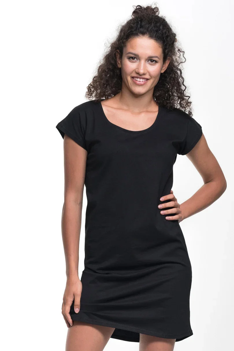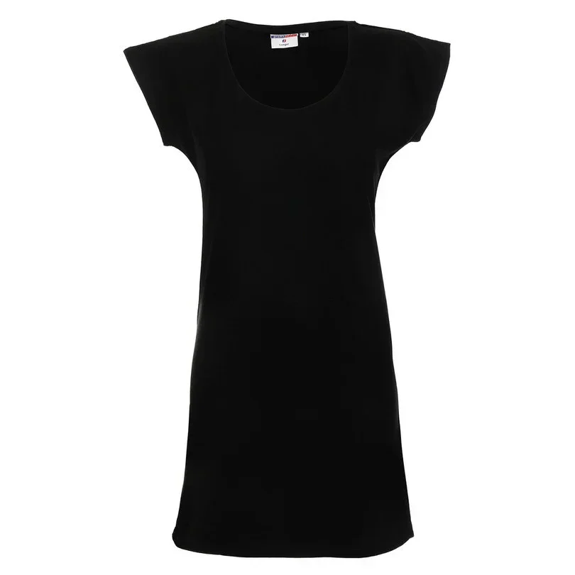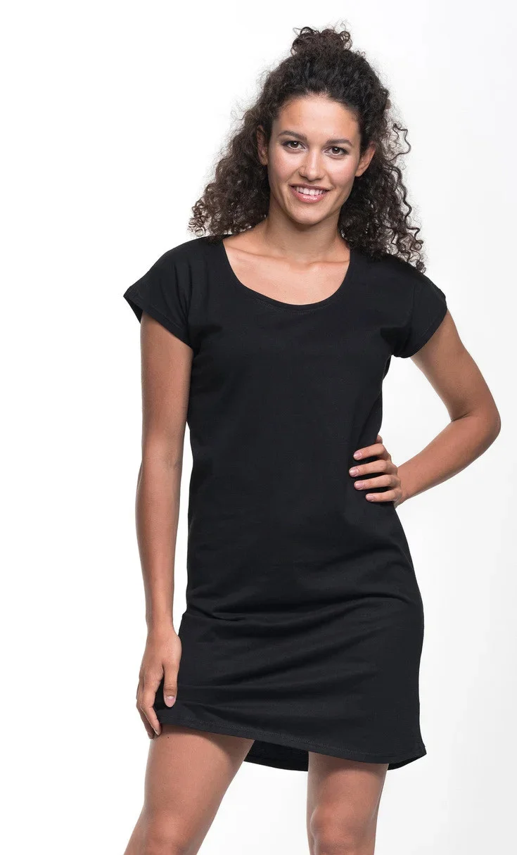 Tuniko-šaty volnějšího, pohodlného střihu. Materiál je single jersey. Ve výstřihu lemování. Šaty mají elastické, dvojité švy. Gramáž: 170g/m2.