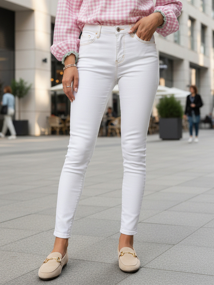 Dámské úzké džíny s vysokým pasem bílé FashionStreet UY2863