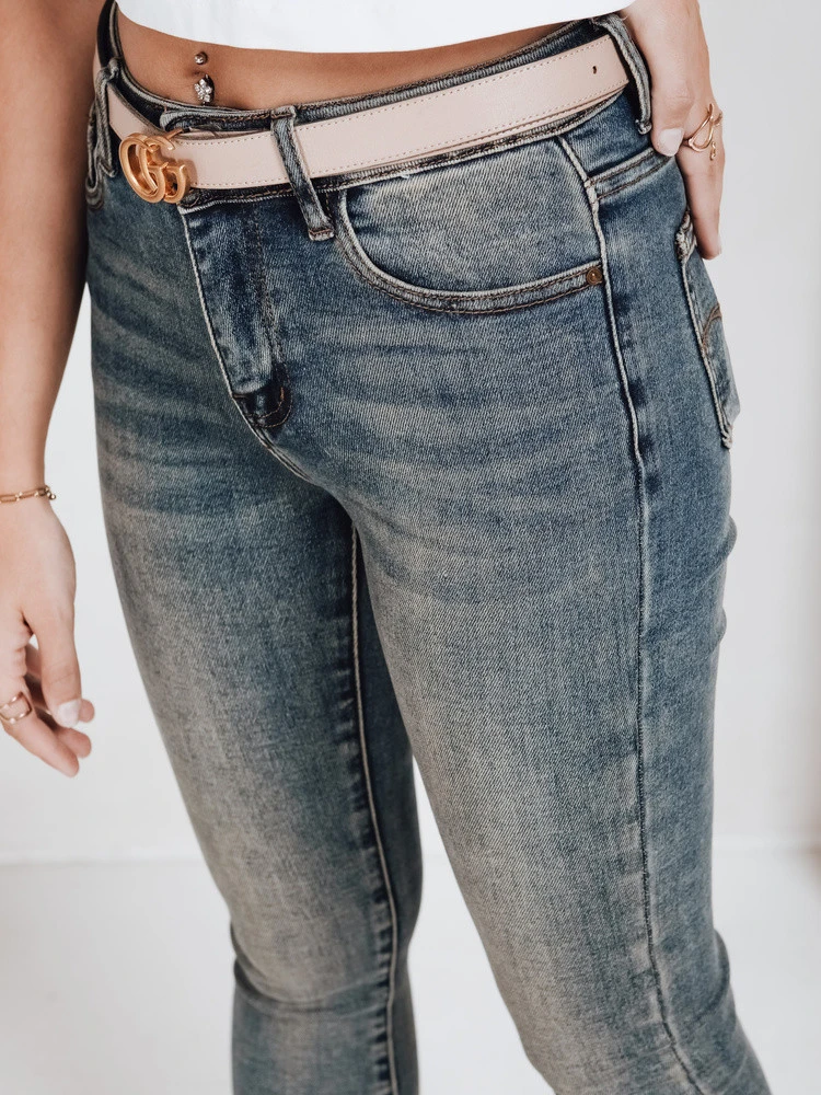 Jeansy z wysokim stanem damskie niebieskie UY2792