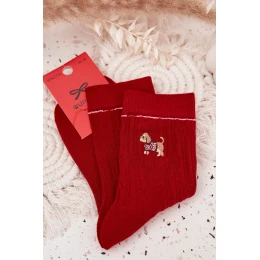 Dámské vánoční ponožky se srdíčky a pejskem – červené
