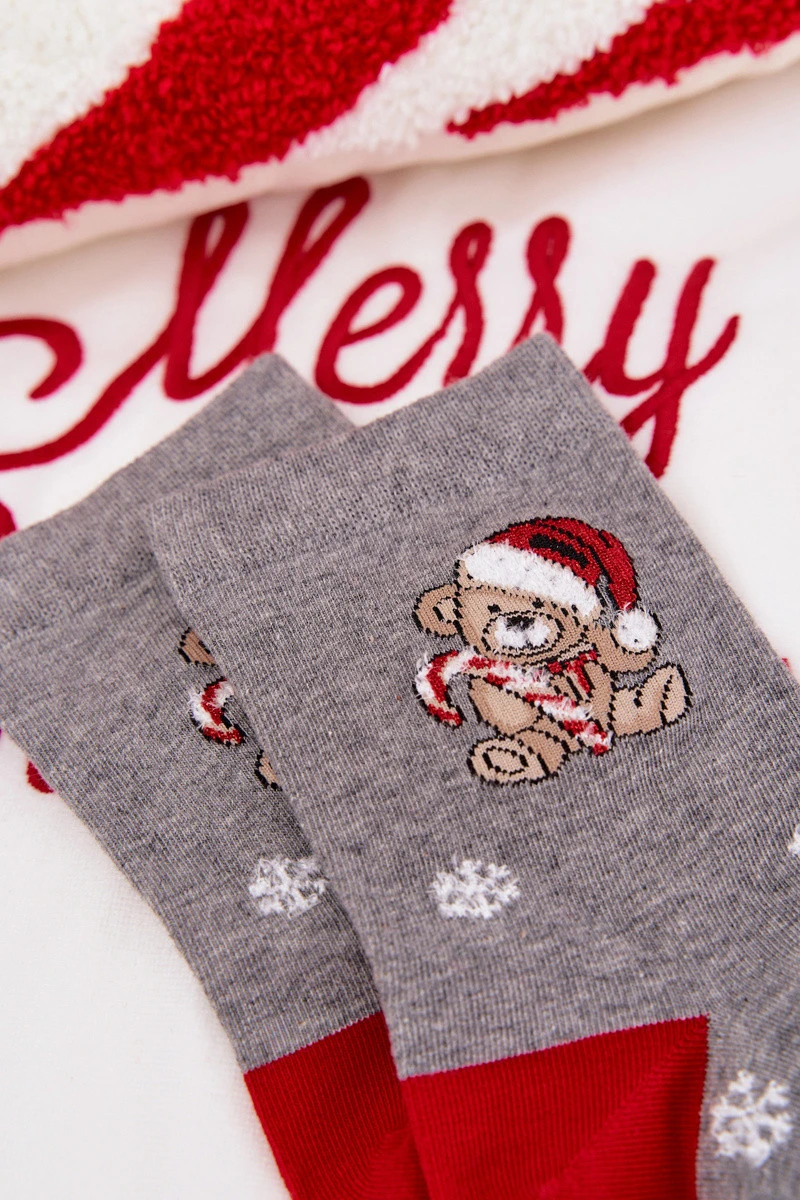 Dámské vánoční ponožky sněhové vločky medvěd v čepici Santa Claus tmavě šedé