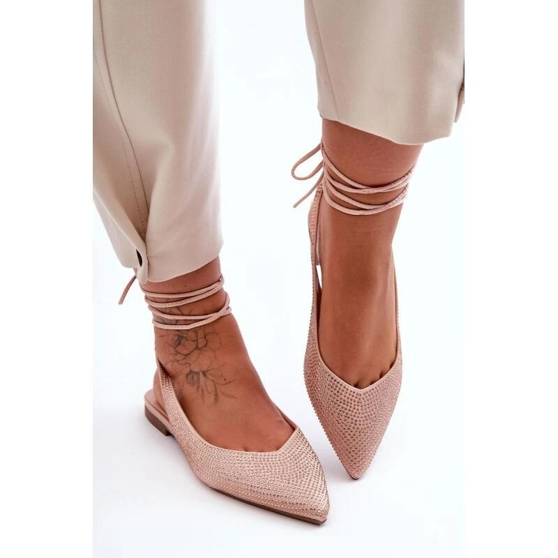 Produkt Dámské vázané baleríny s kamínky 6140 Béžová - Diamantique prodáváme v těchto velikostech: 37a barvách béžová1210004816289