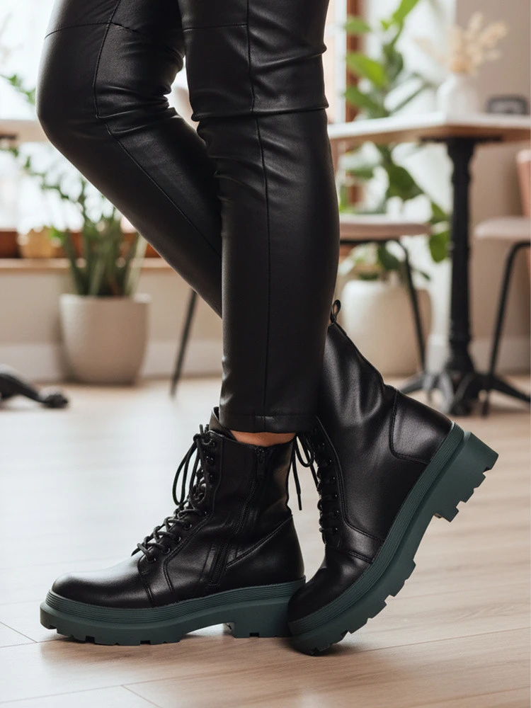 Nowoczesne botki zaprojektowane z myślą o kobietach ceniących wygodę i styl. Masywna podeszwa dodaje charakteru, a solidna konstrukcja zapewnia trwałość na wiele sezonów. Idealne do codziennych stylizacji, podkreślają miejskie, nieco surowe podejście do mody. Łączą w sobie funkcjonalność i modny wygląd, stanowiąc obowiązkowy element w garderobie.