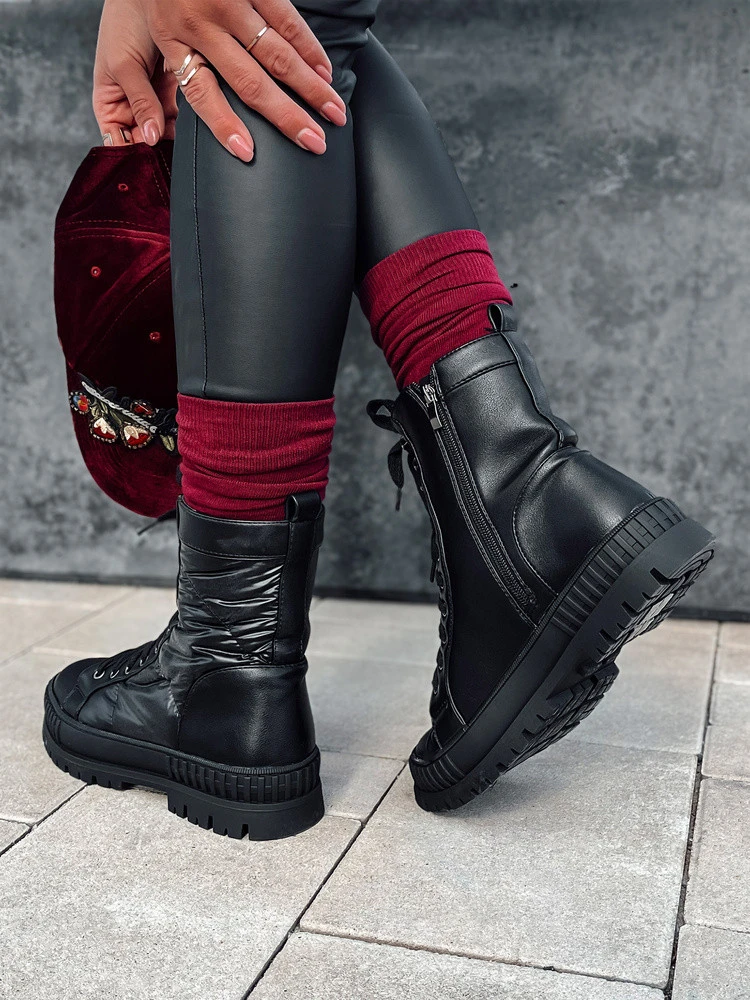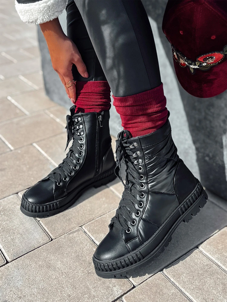 Vysoké šněrovací boty s robustní podrážkou jsou ideální volbou pro podzimní/zimní sezónu. Jedinečný design kombinuje pohodlí a funkčnost. Díky odolným materiálům poskytují tyto boty ochranu před nepřízní počasí a zároveň dodají styl každému outfitu. Jsou ideální pro každodenní procházky městem, zaručují pohodlí a moderní vzhled.