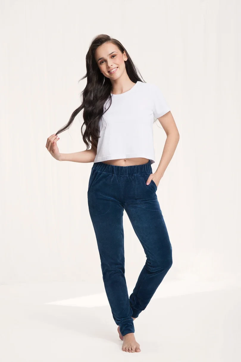 Dámské velurové kalhoty s dlouhými nohavicemi.