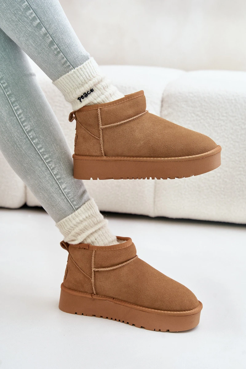 Dámské Velurové Sněhule Na Platformě Camel model 21670462 - Boto