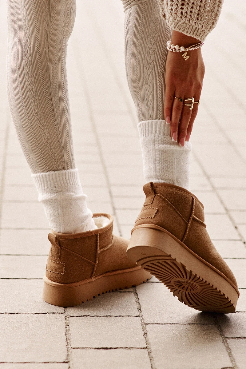 Extrémně módní sněhule jsou ideální pro mrazivé dny. Vyrobeny z přírodní semišové kůže. Vnitřek bot je vyhříván silným kožíškem. Umístěny na platformě, která účinně izoluje od studené země. Tento model by rozhodně měl být ve vašem šatníku! Při výběru velikosti se řiďte tabulkou velikostí.